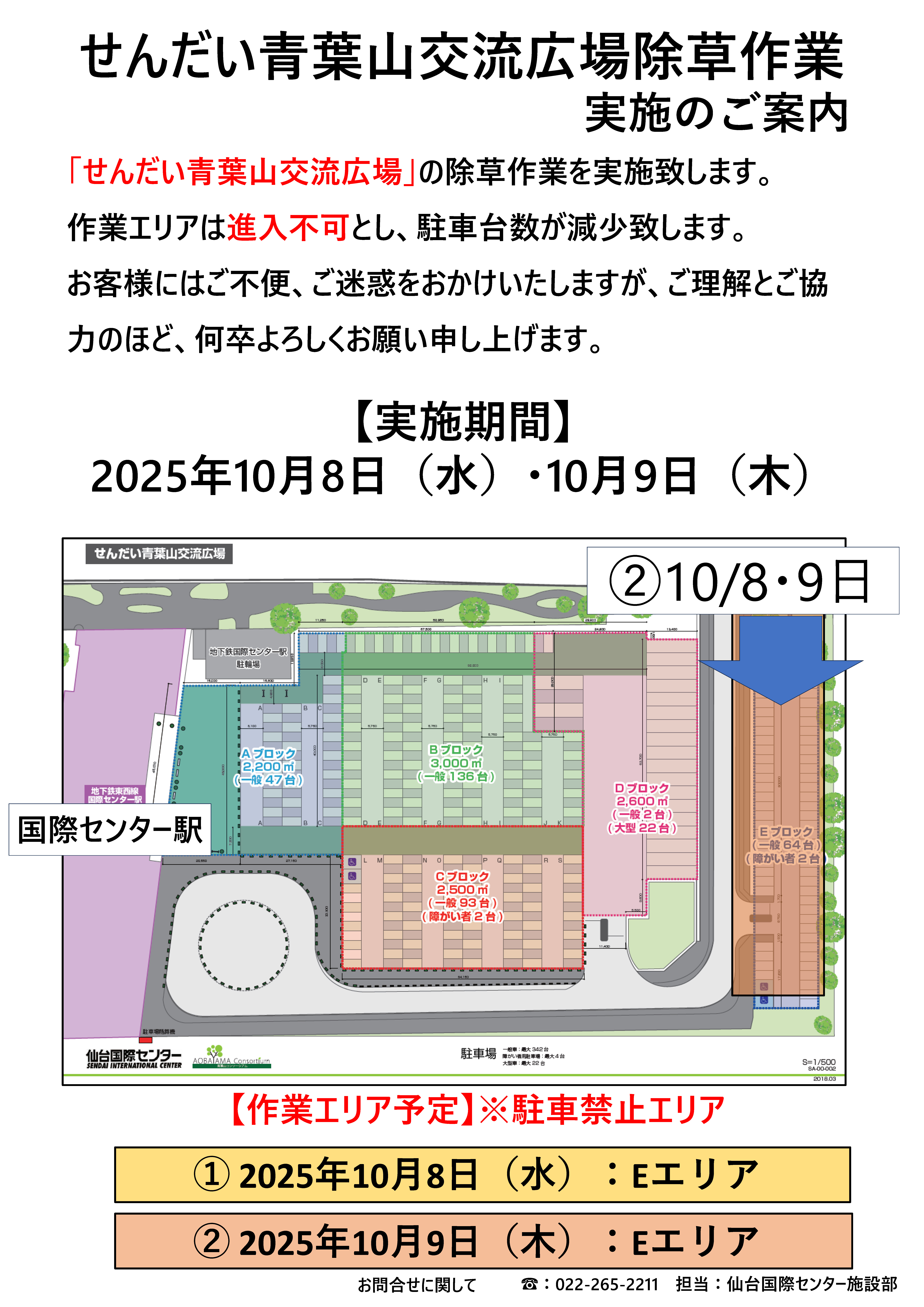 ■2025年10月8日(水)~9日(木):Eエリア ※10月7日(火)夕方より駐車制限を行います。