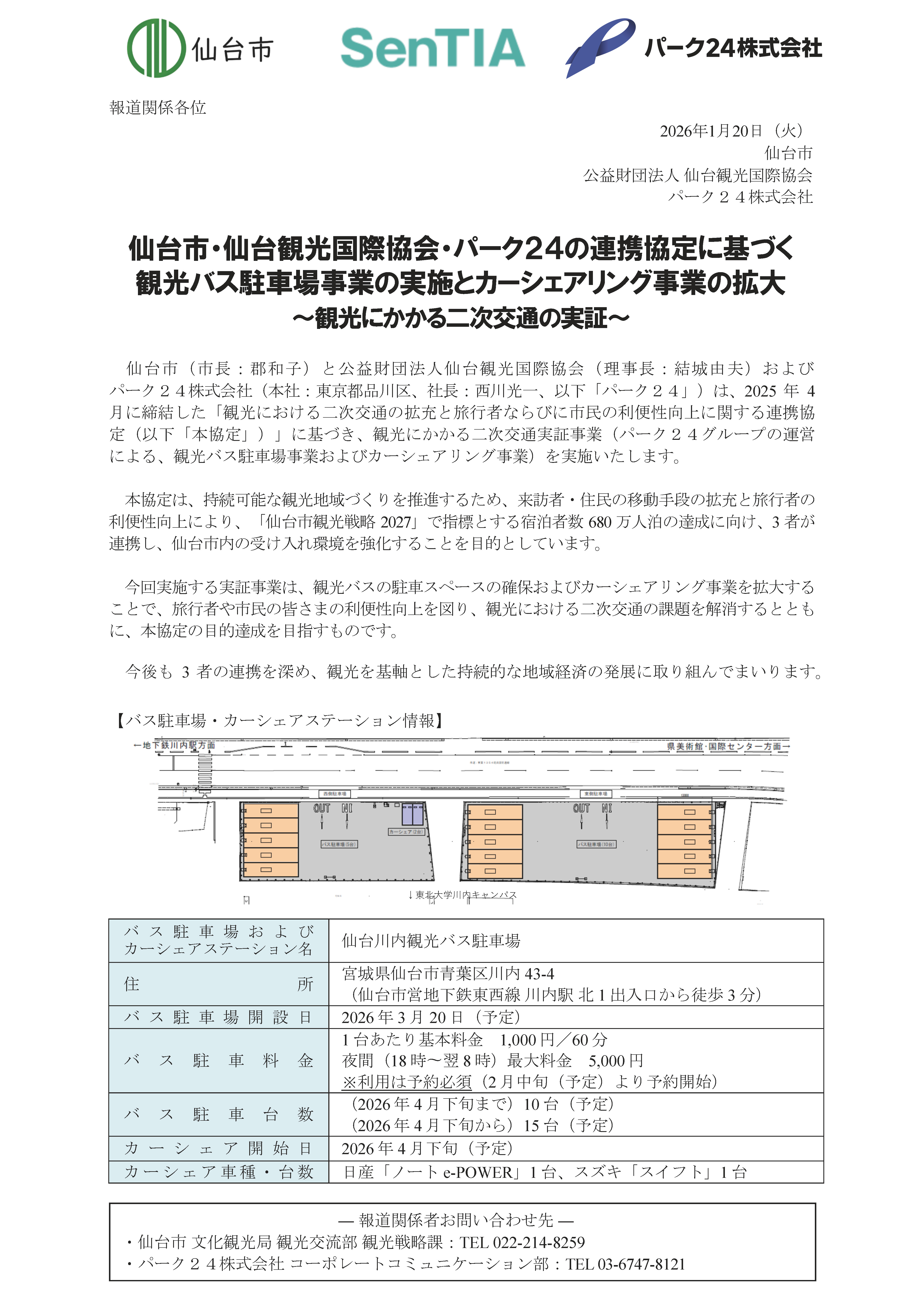 <仙台市-連携協定に基づく観光バス駐車場・カーシェアリング事業を実施します>